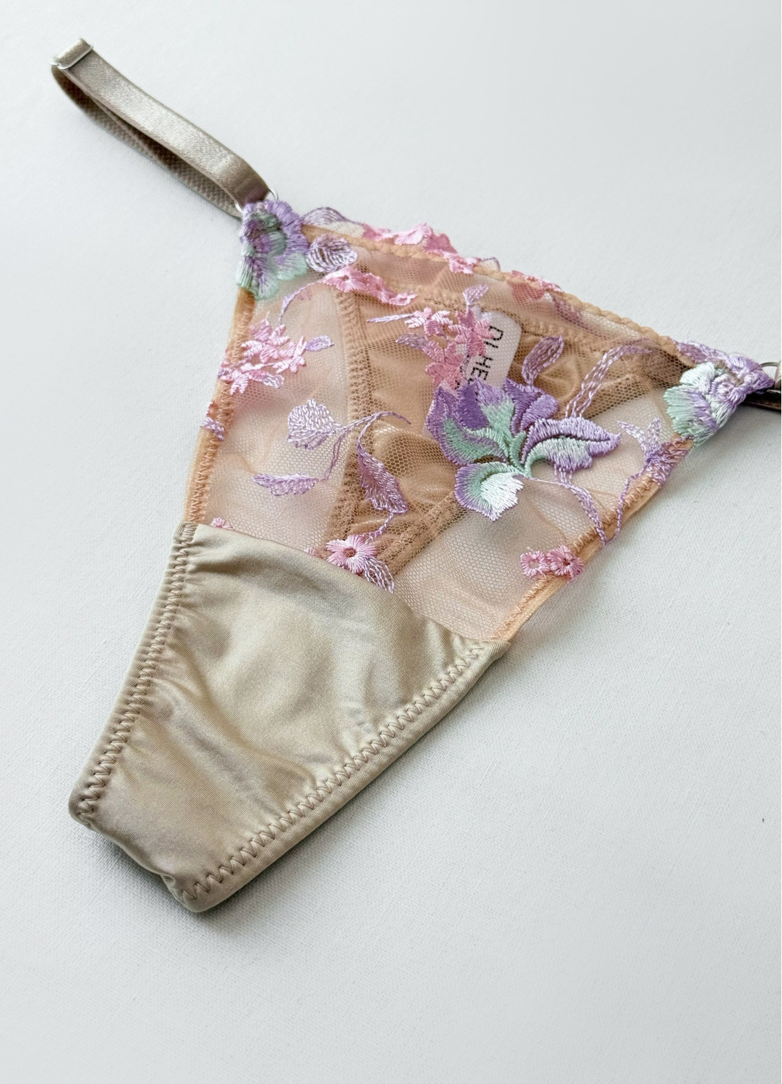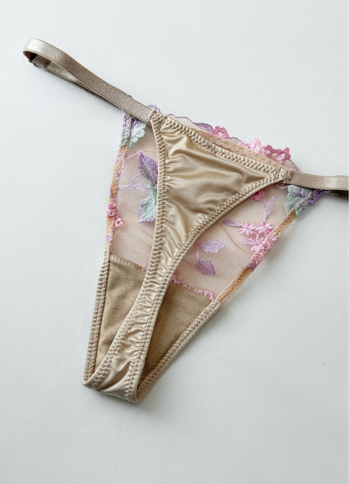 Трусики-стрінги «Асті» — це витончене поєднання елегантності та комфорту. Модель виконана з делікатного мережива та доповнена регуляторами, що дозволяють ідеально підлаштувати посадку під вашу фігуру.