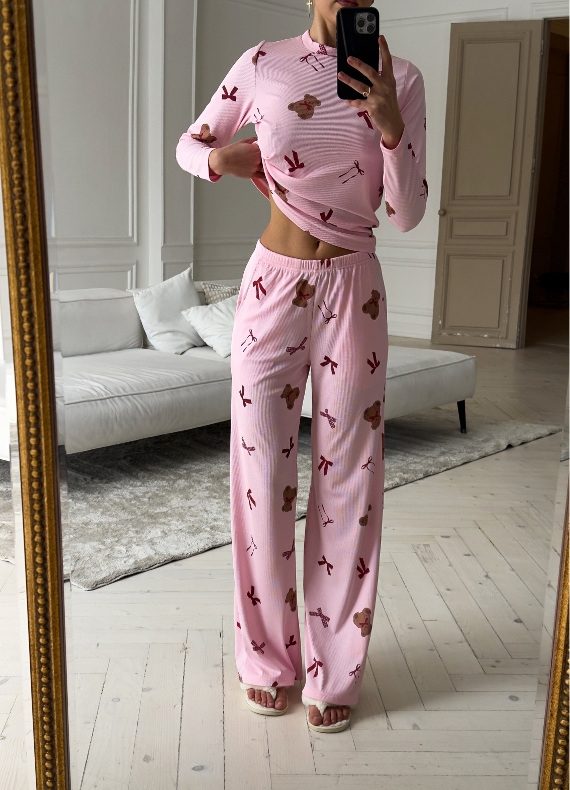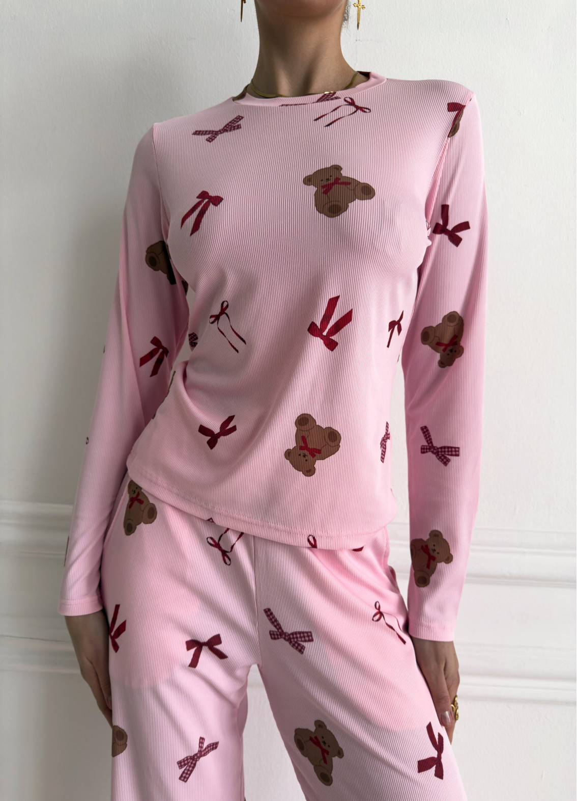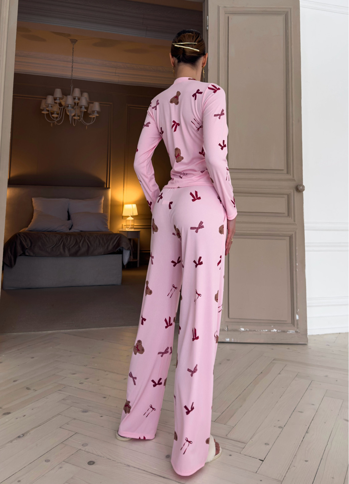 - Романтичний принт із ведмедиками та бантиками додає ніжності та жіночного шарму.
