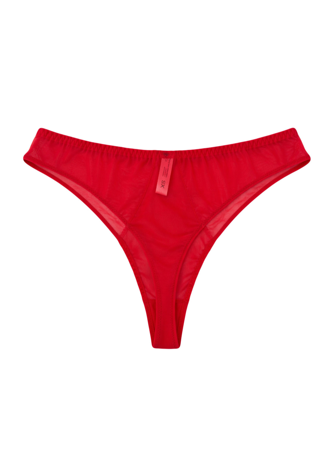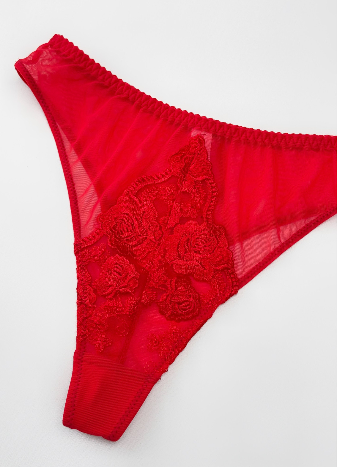 - Червоні стрінги з сіточки з мереживом — легкі та витончені.