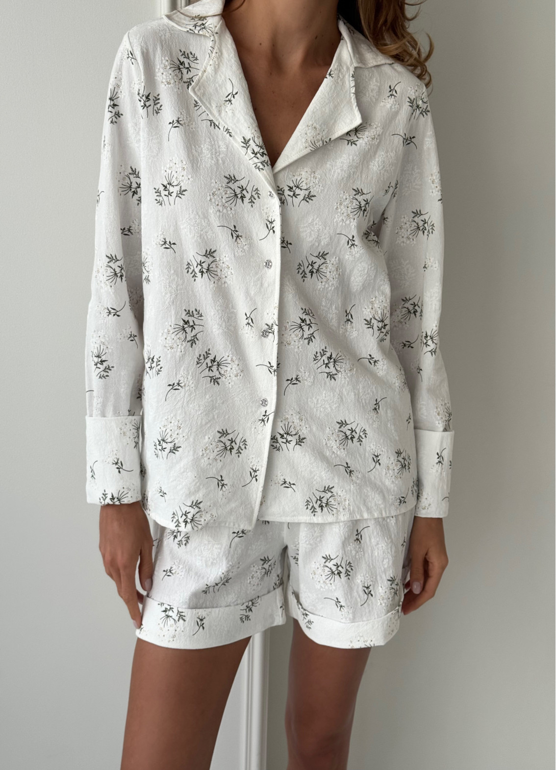 Піжама «Елісон» — це стильний і комфортний комплект для домашнього відпочинку та сну. Складається з сорочки з комірцем і шортів, виконаних з 100% бавовни, яка приємна на дотик і забезпечує комфорт протягом усього дня.