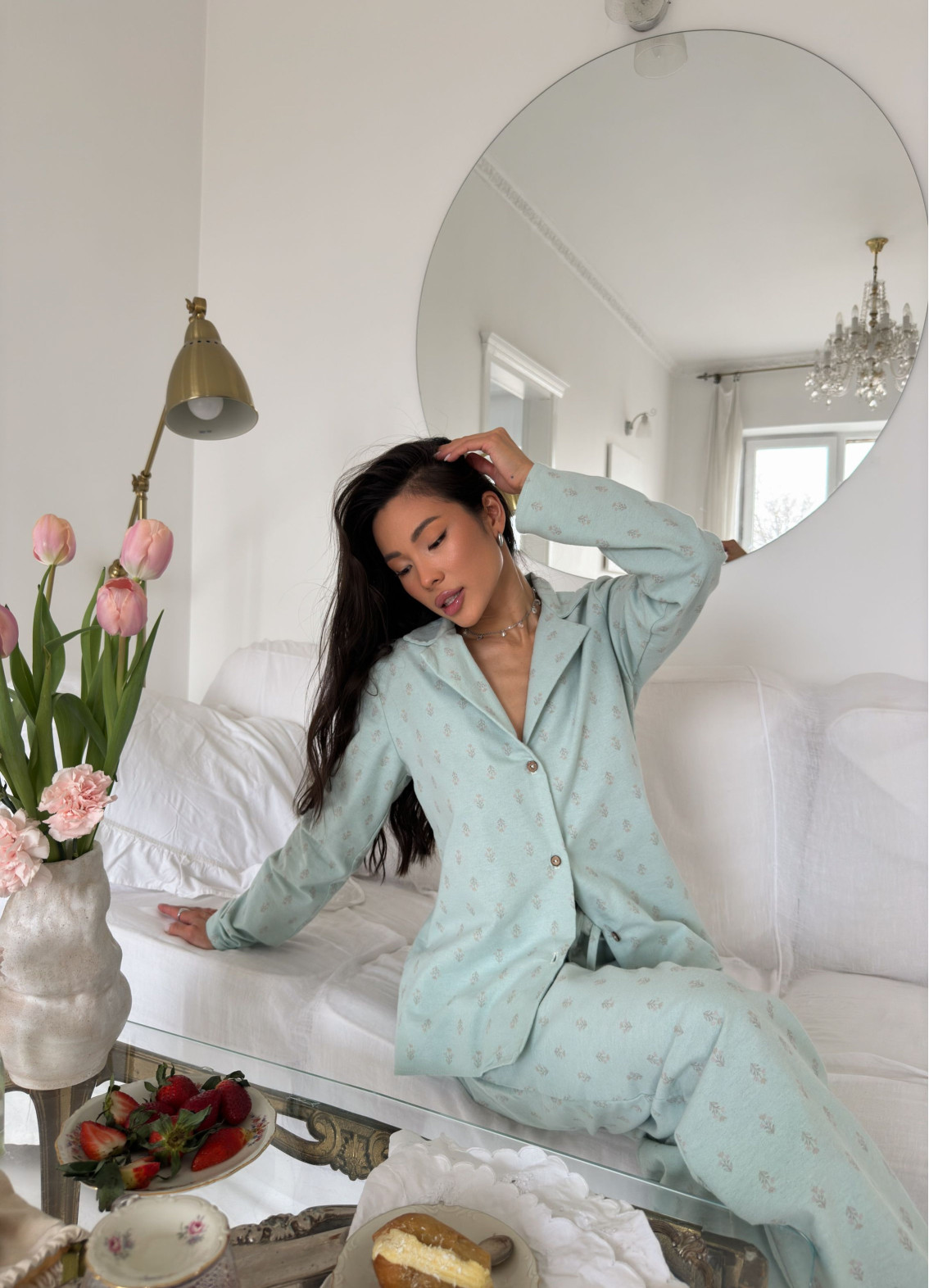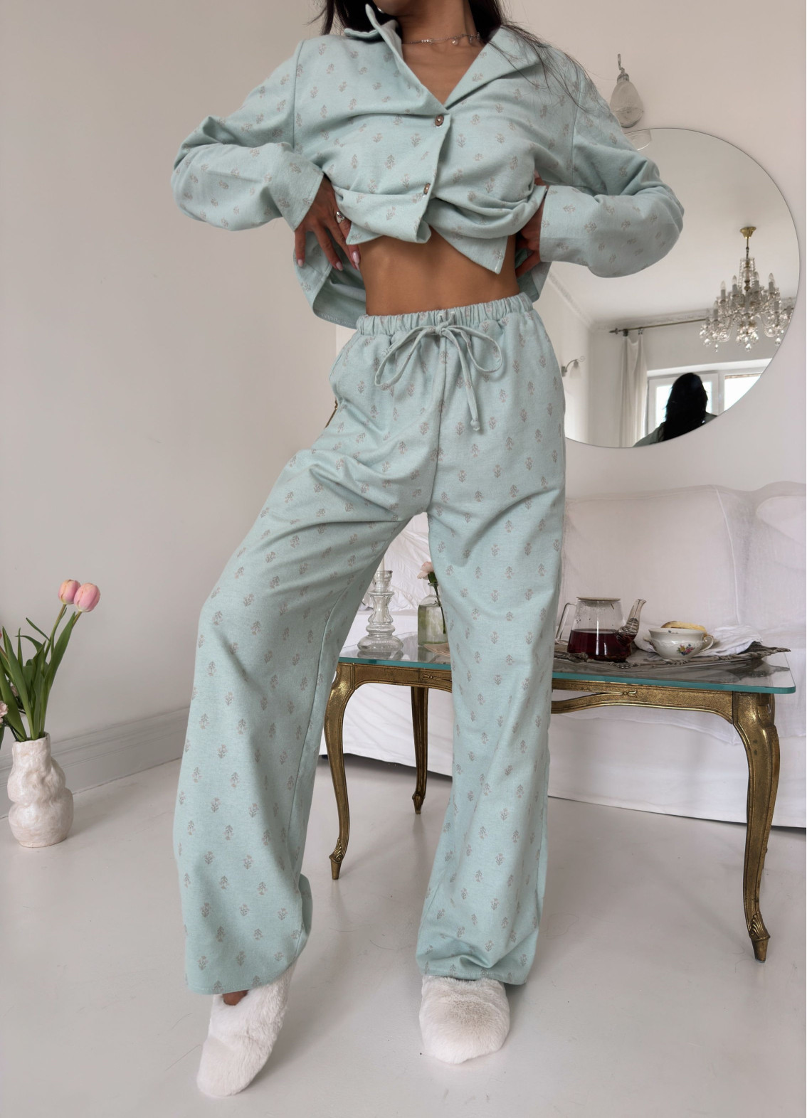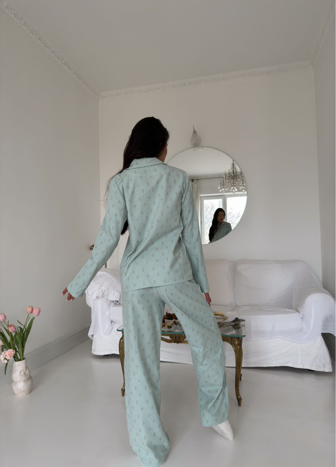 Піжама "Глорія" — це поєднання комфорту, ніжності та елегантного домашнього стилю. Комплект складається зі штанів і сорочки з довгим рукавом, що забезпечує затишок і зручність протягом ночі та під час відпочинку вдома. Легка натуральна тканина приємна до тіла, добре пропускає повітря та дарує відчуття м’якості на шкірі.