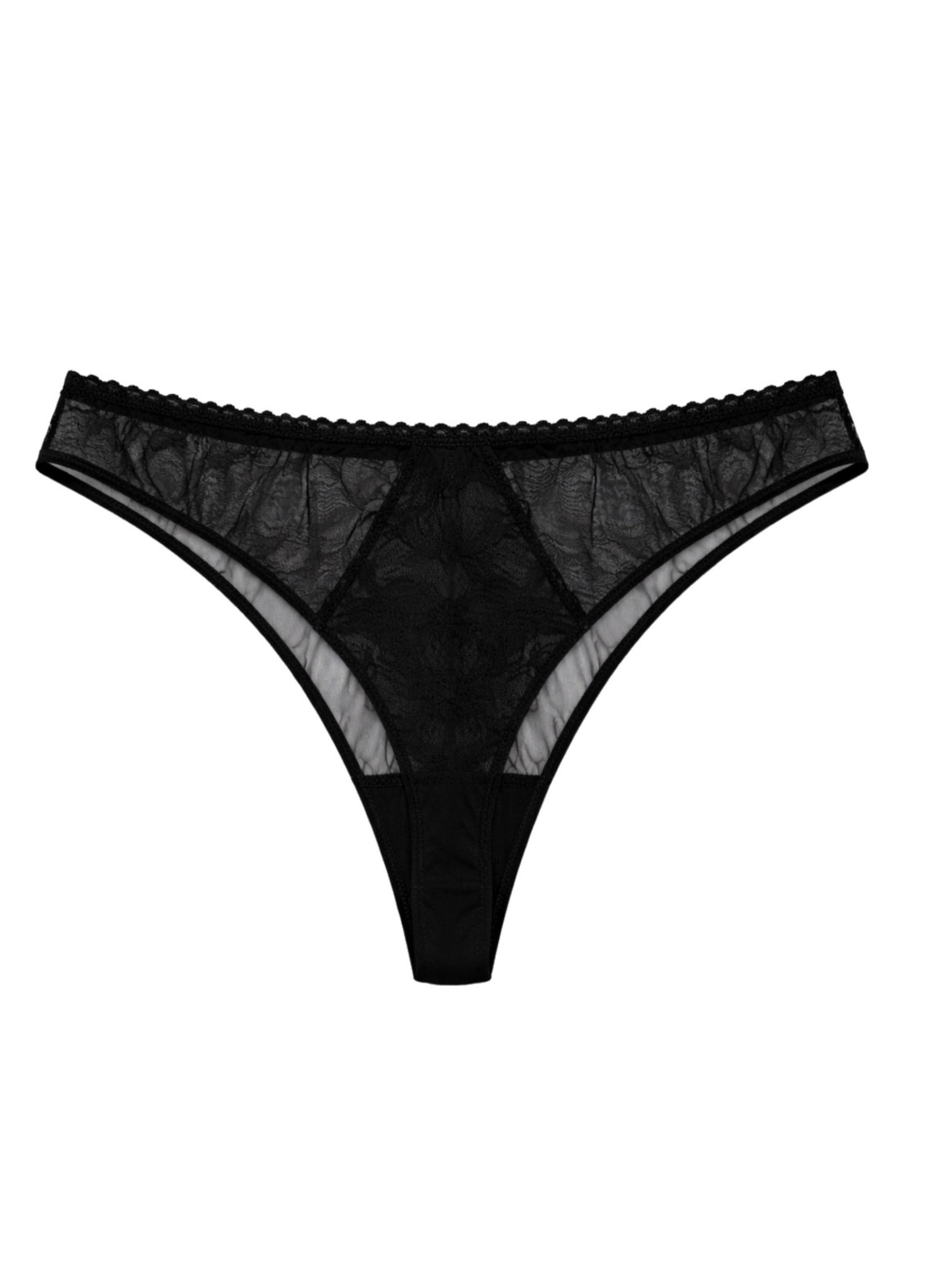 Трусики-стрінги «Космея» — це поєднання елегантності та преміальної якості. Модель виконана з чорної преміальної сіточки, а спереду прикрашена витонченим мереживом, створюючи стильний та жіночний образ.