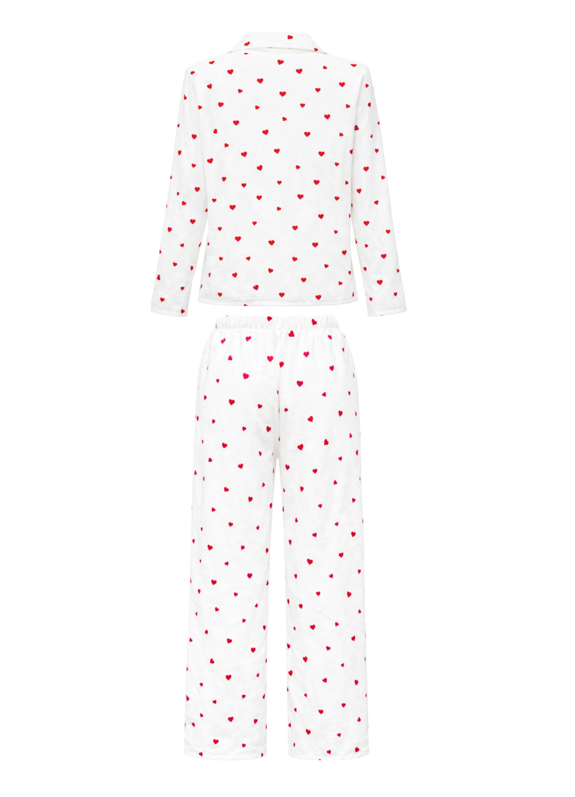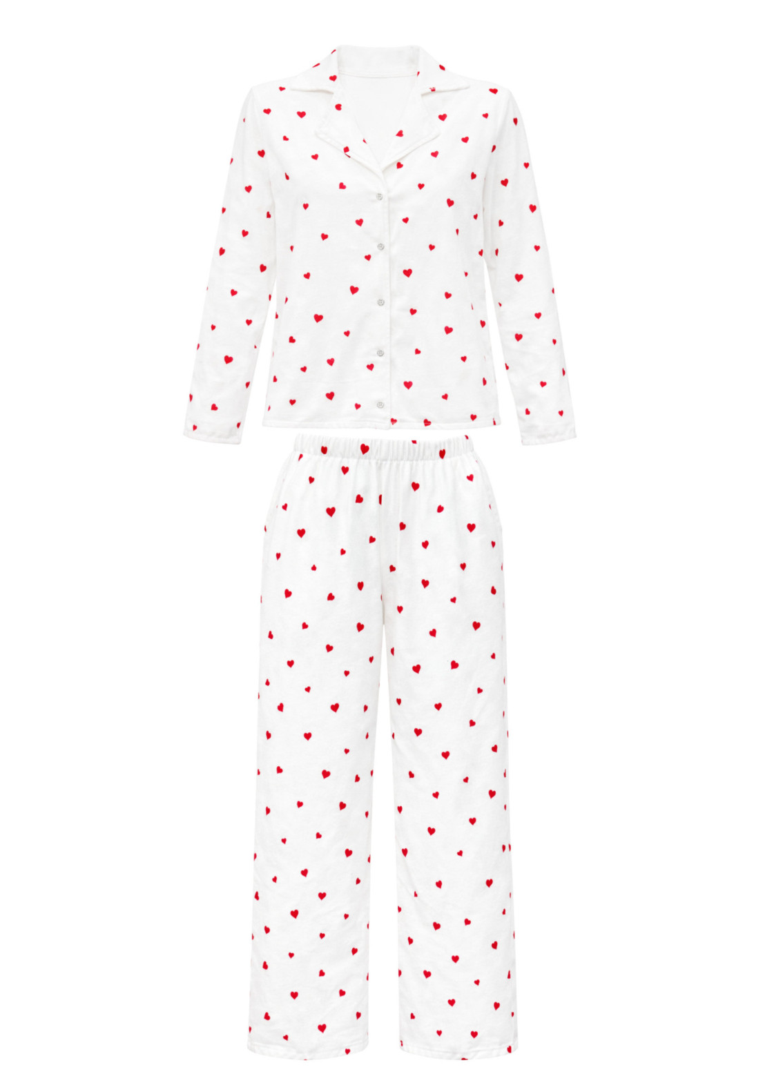Класична жіноча піжама, що забезпечує тепло та комфорт для приємного сну і домашнього відпочинку. Виготовлена з натуральної фланелі, яка дарує м'якість та затишок у прохолодну погоду. Комплект складається з сорочки на ґудзиках та довгих штанів вільного крою.
