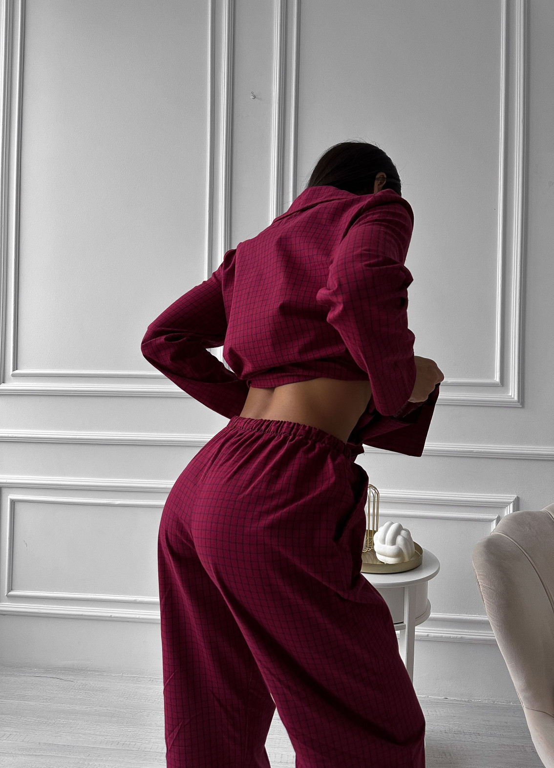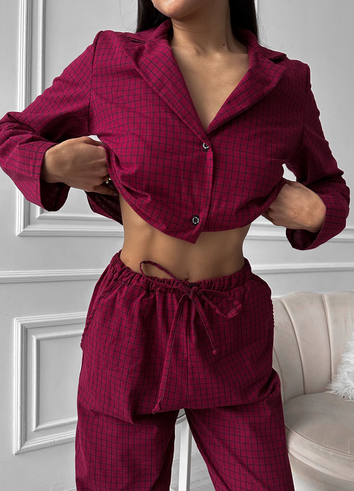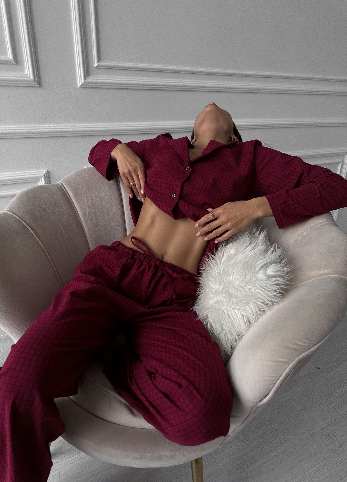 Жіноча піжама Матильда, бавовняна, з сорочкою і штанами, бордова