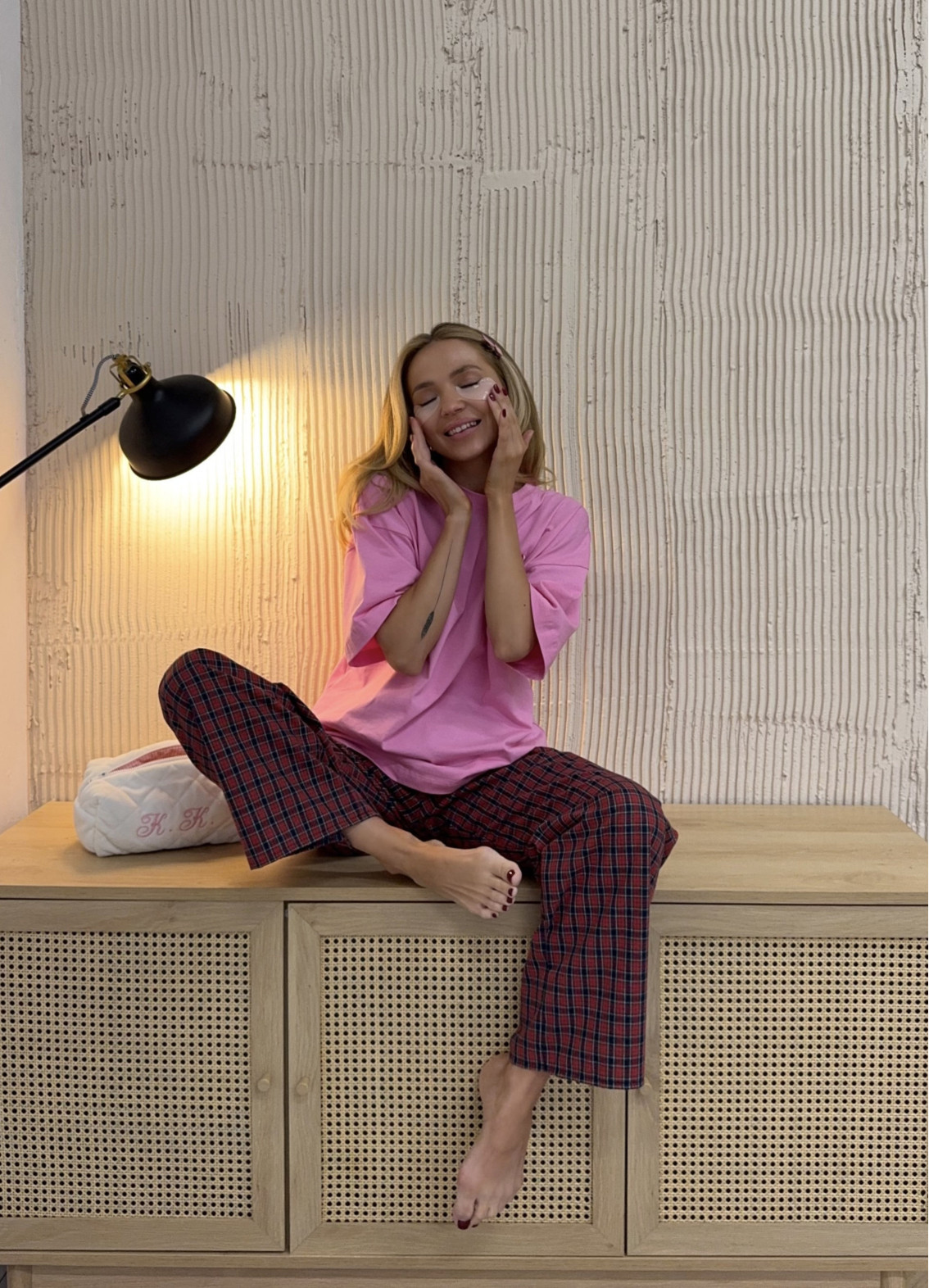 Піжама "Медіна" — комфортний та стильний комплект для затишного домашнього відпочинку. М’яка та приємна до тіла тканина забезпечує легкість рухів і зручність упродовж усього дня. Модель поєднує універсальну футболку та штани прямого крою, створюючи практичний та сучасний домашній образ.