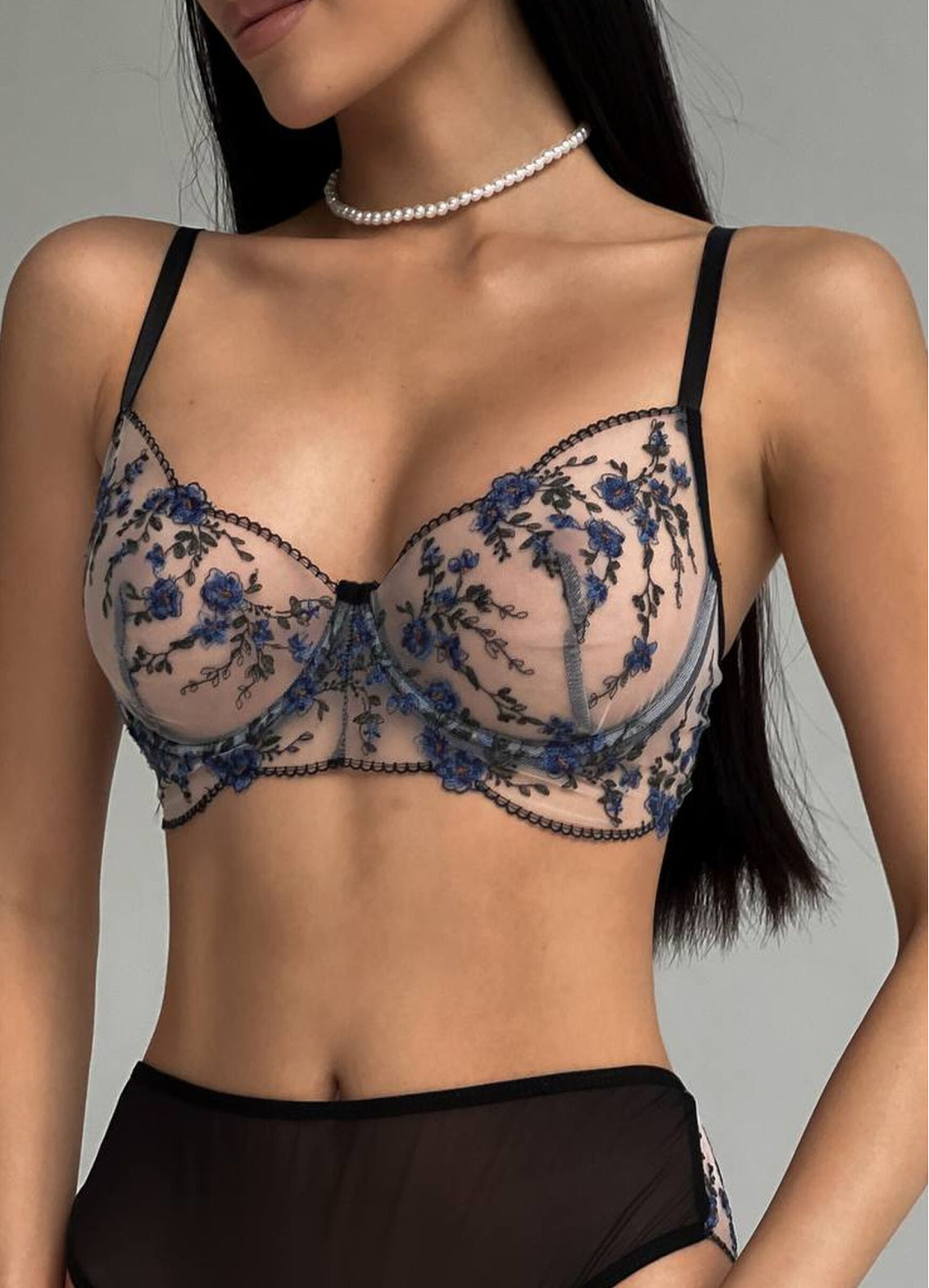 Прозора сітчаста основа в поєднанні з делікатною вишивкою виглядає легко та витончено, а регульовані бретелі забезпечують ідеальну посадку. Бюстгальтер чудово підійде як для щоденного носіння, так і для особливих випадків.