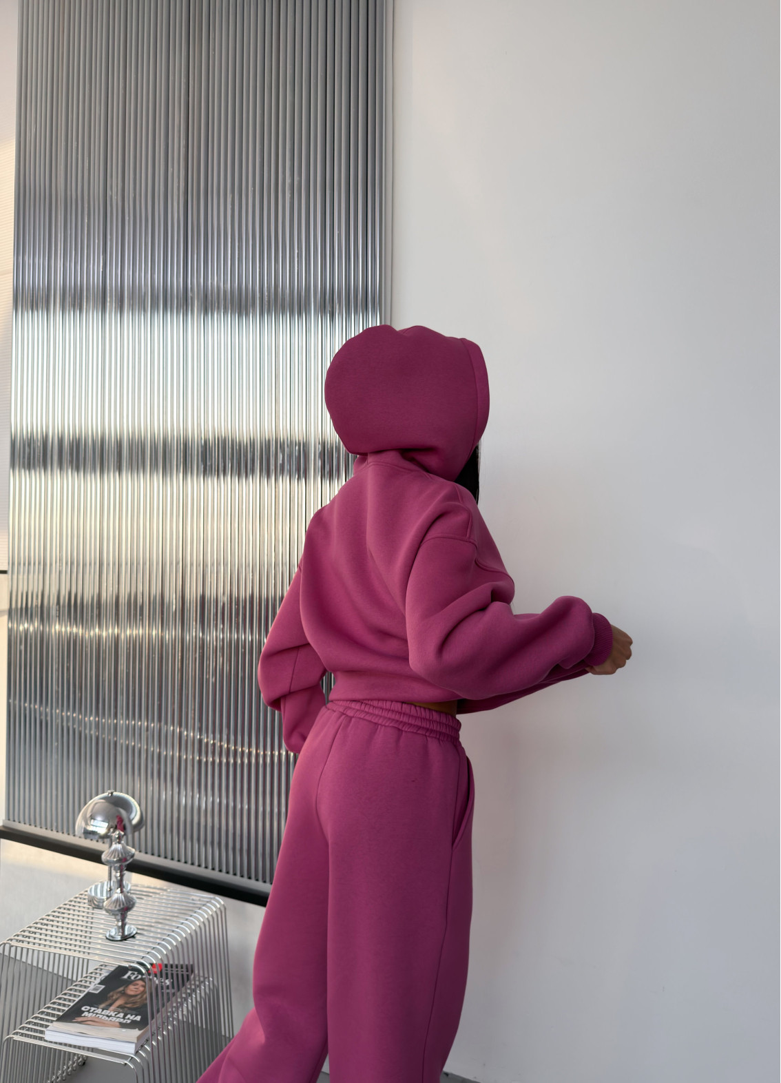 - Верх: худі з капюшоном без кишень, вільного крою.