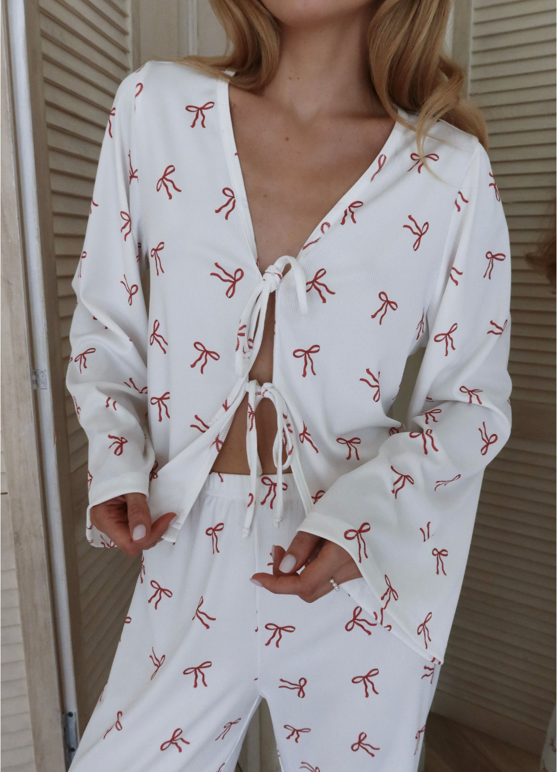 - Застібка на зав’язках спереду додає піжамі романтичності та створює гарний акцент на лінії декольте.